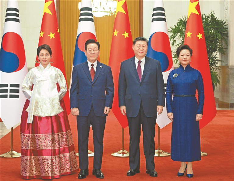 习近平向韩国人民致以诚挚新年祝福。习近平指出,我和李在明总统已两次见面并实现互访,体现了双方对中韩关系的重视。作为朋友和邻居,中韩应该多走动、常来往、勤沟通。中方始终将中韩关系置于周边外交重要位置,对韩政策保持连续性、稳定性。中方愿同韩方一道,牢牢把握友好合作方向,秉持互利共赢宗旨,推动中韩战略合作伙伴关系沿着健康轨道迈进,切实增进两国人民福祉,为地区乃至世界和平与发展正向赋能。