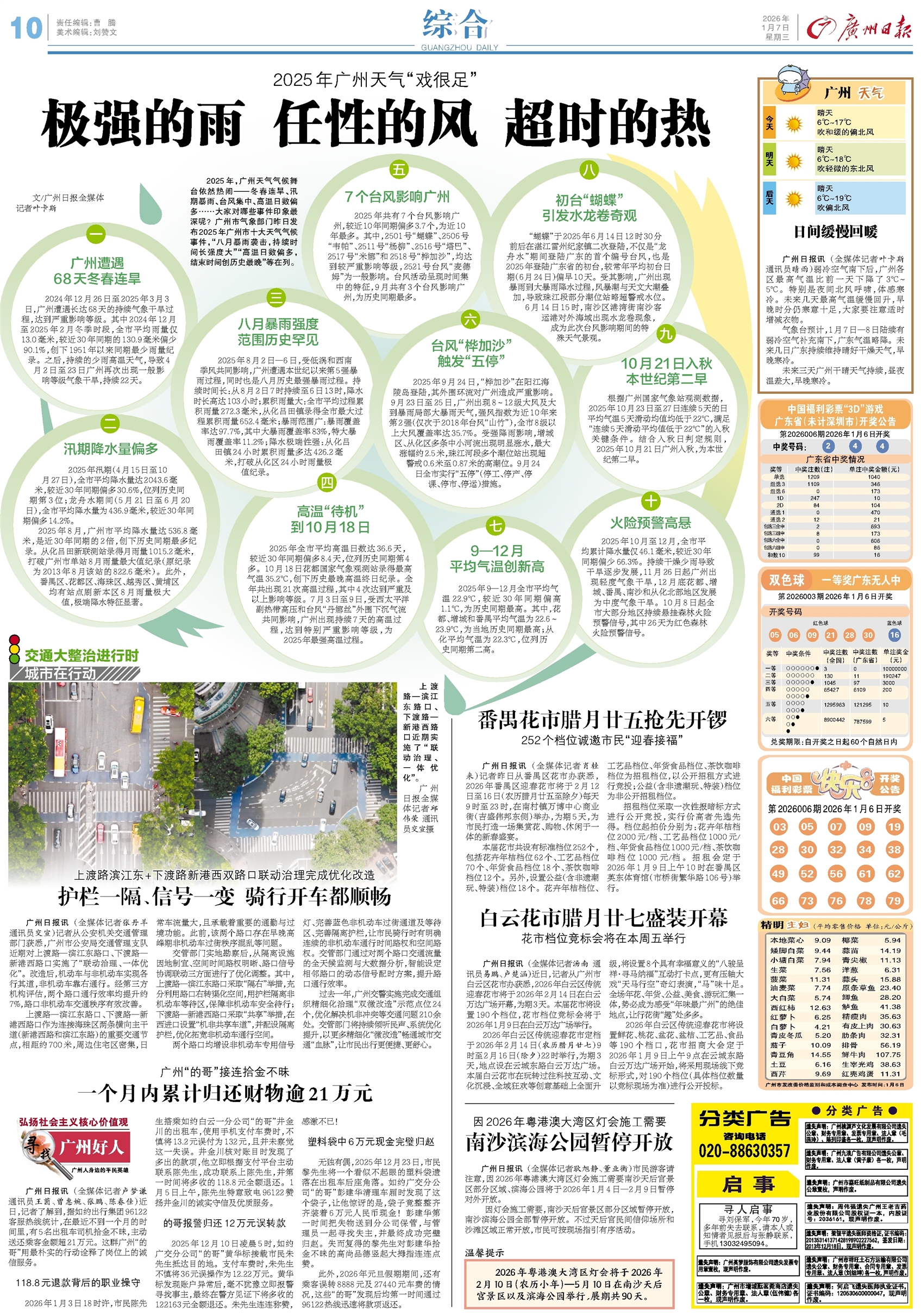 - 极强的雨 任性的风 超时的热 文/广州日报全媒体记者叶卡斯 2025年,广州天气气候舞台依然热闹——冬春连旱、汛期暴雨、台风集中、高温日数偏多……大家对哪些事件印象最深呢?广州市气象部门昨日发布2025年广州市十大天气