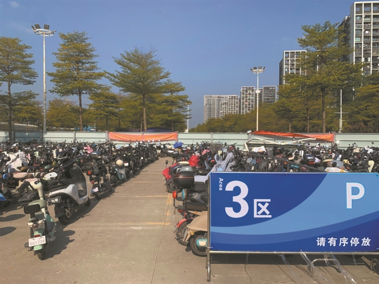 记者看到,这里还设有大型电动自行车免费停车场,场内有清晰的指示牌和标志,引导车辆进场停放。值得一提的是,场内停车全凭车主自觉,很多车主会自觉沿着停放区域,依次有序将车辆停放好。根据指引,停车场停满后,车主可在停车场周边划定的停车区域停放。