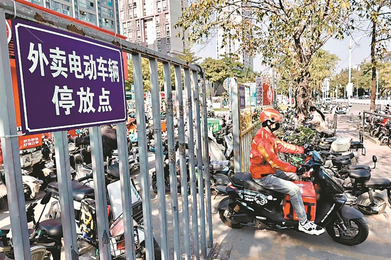 “电动自行车普及后,地铁口非机动车停放乱象日益突出。洛浦街在市区相关部门支持下,选取南浦站A口作为整治示范点,将原有机动车停车场调整改造为非机动车专用停车场,划分充电、消防、换乘、临时停靠等8大功能区,新增1700个车位,有效解决了该站点停车难、出入口堵塞的问题。”番禺区洛浦街综合行政执法队队长邢兆波介绍:“作为属地责任单位,我们严格落实‘市级统筹、部门联动、属地落实’工作要求,主动联合相关部门推进南浦站地铁站口环境整治,联动相关单位盘活闲置地块,助力建设2个智能停车场,在南浦站A、B口共新增3300个车位,在B口设置外卖专用停放区,A口加装197米隔离护栏,有效规范了停放秩序。”