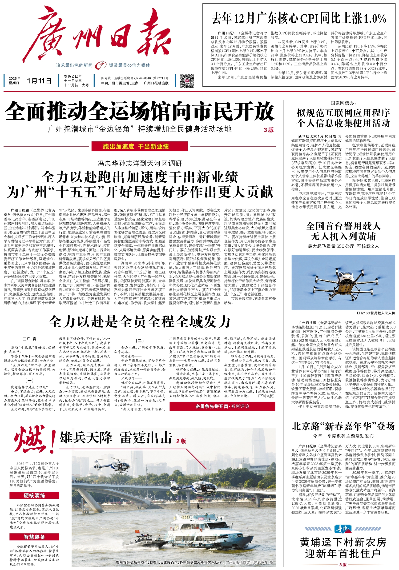 广州日报头版 A1全力以赴是全员全程全域发力 广言2026-01-11 2 2026年01月11日 星期日