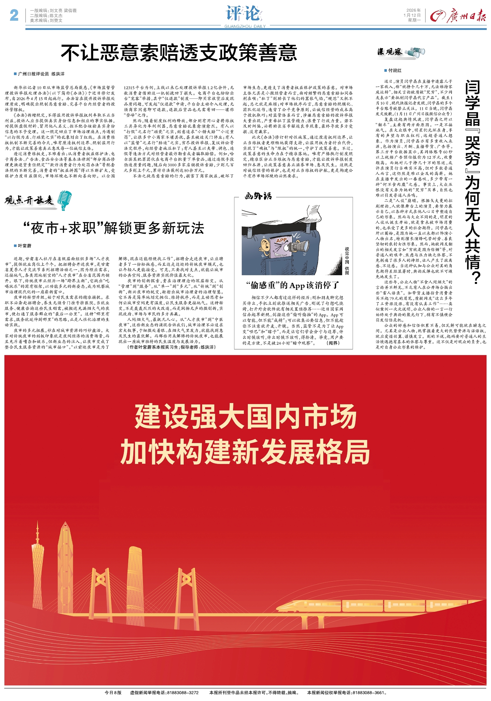 - 不让恶意索赔透支政策善意 广州日报评论员 练洪洋 新华社记者10日从市场监管总局获悉,《市场监督管理投诉举报处理办法》(以下简称《办法》)于近日修订发布,自2026年4月15日起施行。办法旨在提升投诉举报处理质效,明确