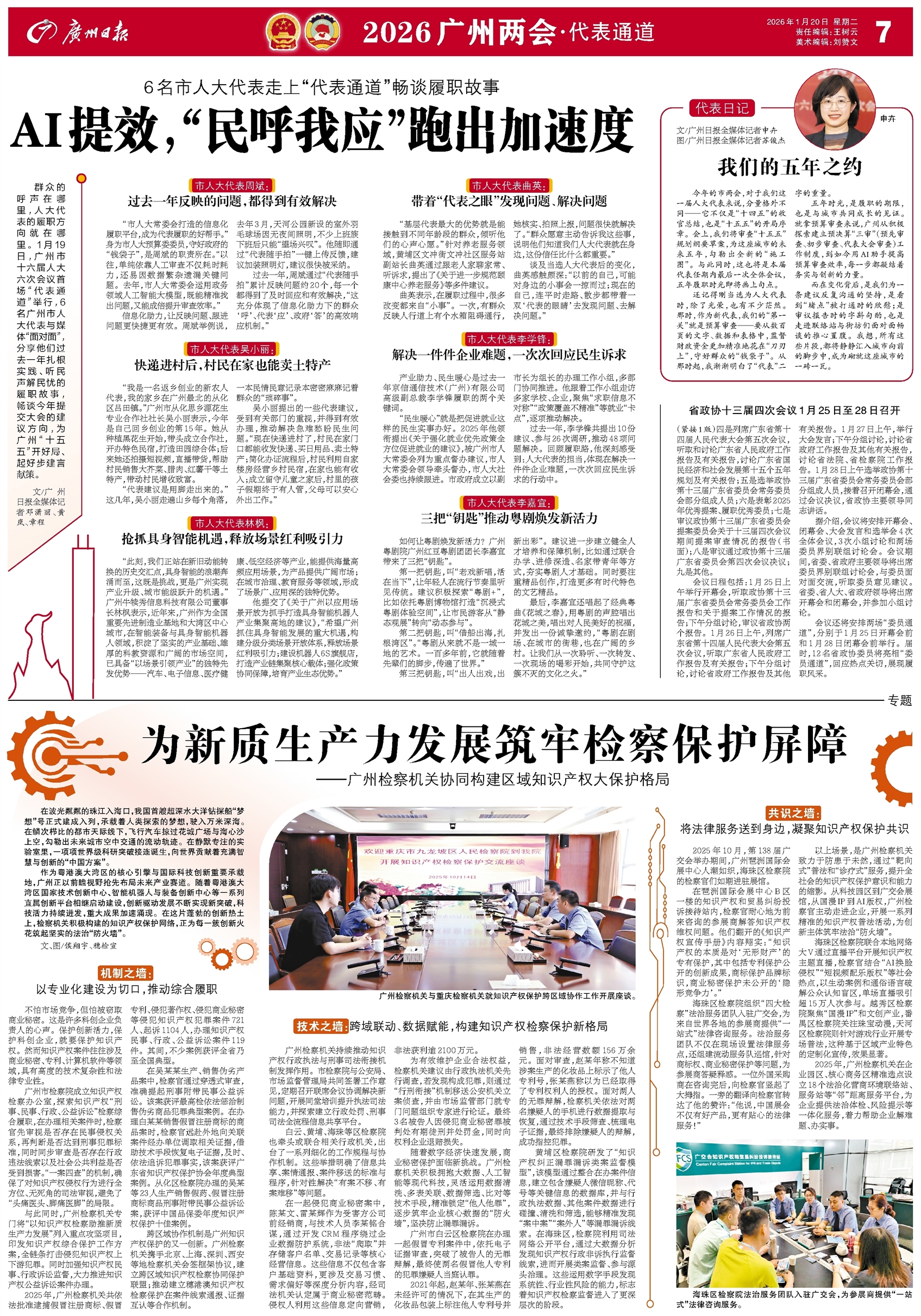 - 我们的五年之约 代表日记 文/广州日报全媒体记者申卉 图/广州日报全媒体记者苏俊杰 今年的市两会,对于我们这一届人大代表来说,分量格外不同——它不仅是“十四五”的收官总结,也是“十五五”的开局序章。会