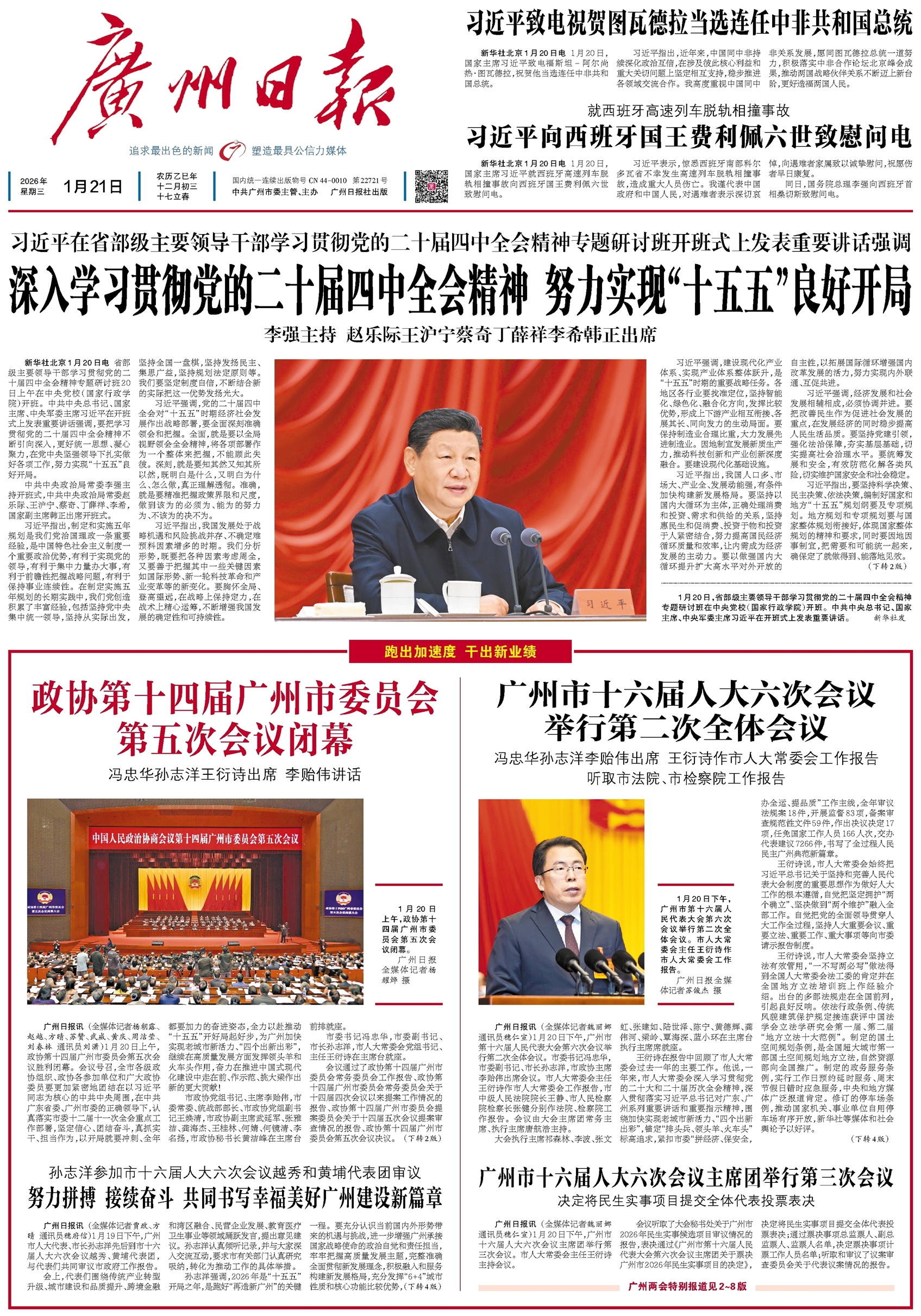 孙志洋强调,2026年是“十五五”开局之年,是跑好“再造新广州”的关键一程。要充分认识当前国内外形势带来的机遇与挑战,进一步增强广州承接国家战略使命的政治自觉和责任担当,牢牢把握高质量发展主题,完整准确全面贯彻新发展理念,积极融入和服务构建新发展格局,充分发挥“6+4”城市性质和核心功能比较优势,着力稳就业、稳企业、稳市场、稳预期,推动经济实现质的有效提升和量的合理增长,加快实现老城市新活力、“四个出新出彩”,继续在高质量发展方面发挥领头羊和火车头作用,奋力在推进中国式现代化建设中走在前列,为“十五五”时期发展奠定坚实基础。
