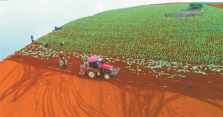 而更深远的影响在于产业升级:水资源的充沛供应,不仅稳定了菠萝、北运菜等传统产业产能,更支撑起预制菜、菠萝酒等深加工产业的蓬勃发展,为一、二、三产业融合注入强劲动力。同时,外调水替代了7万亩耕地的地下水灌溉,地下水水位止降回升,水生态环境持续改善,红土地正重焕生机。