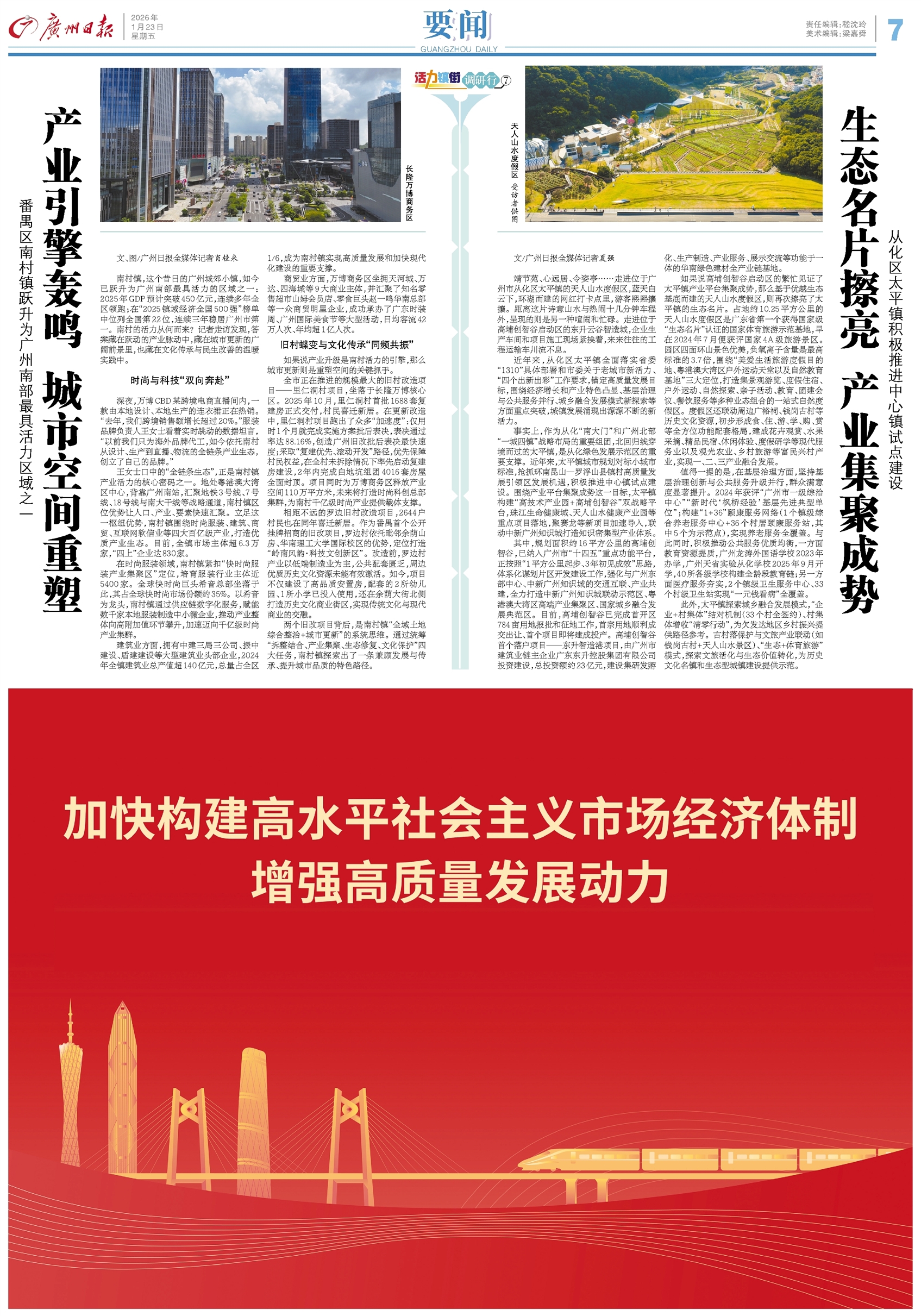 - 产业引擎轰鸣 城市空间重塑 活力镇街调研行⑦ 文、图/广州日报全媒体记者肖桂来 南村镇,这个昔日的广州城郊小镇,如今已跃升为广州南部最具活力的区域之一:2025年GDP预计突破450亿元,连续多年全区领跑;在“202