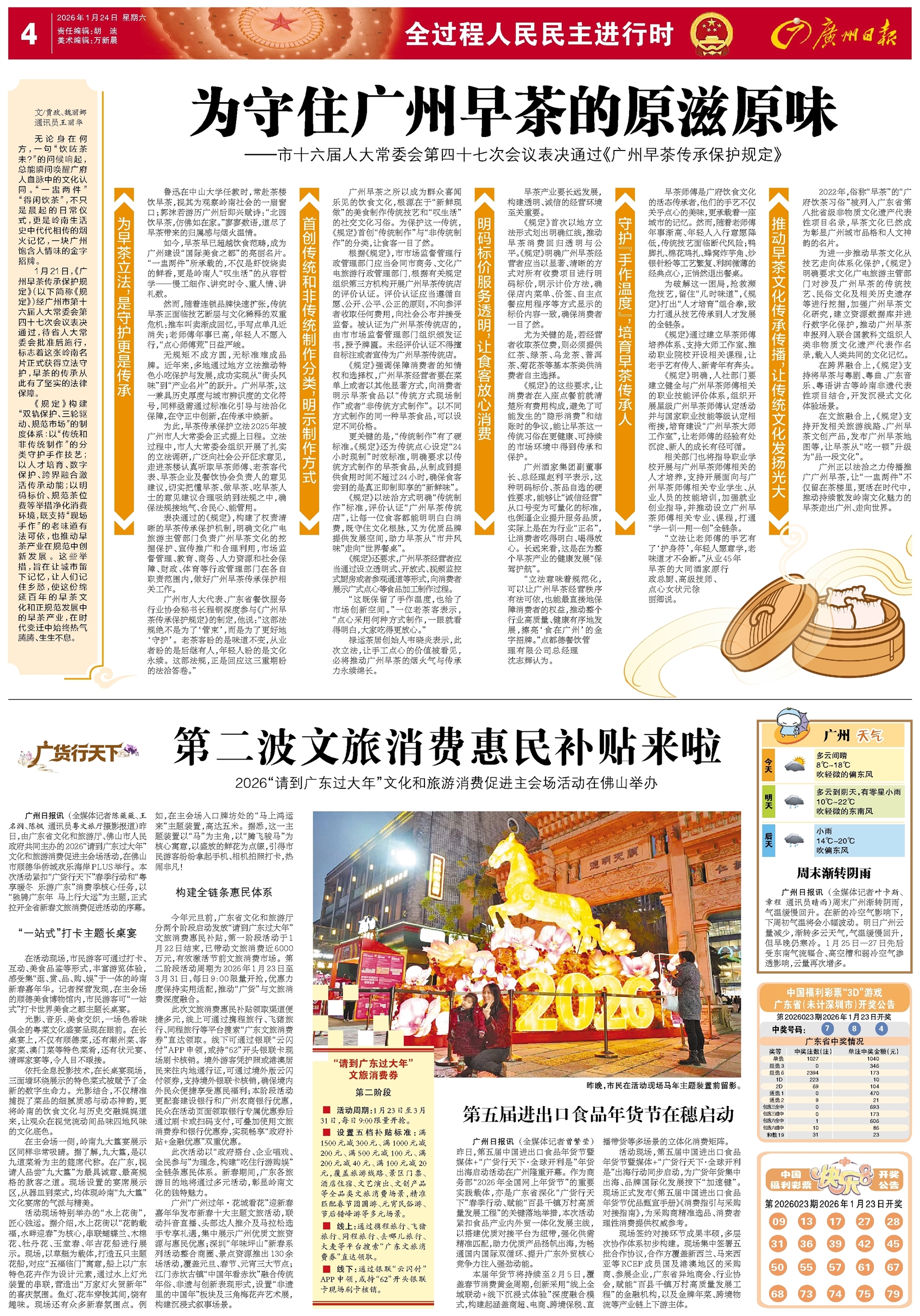 - 第二波文旅消费惠民补贴来啦 广货行天下 广州日报讯 (全媒体记者陈薇薇、王名润、陈枫 通讯员粤文旅厅摄影报道)昨日,由广东省文化和旅游厅、佛山市人民政府共同主办的2026“请到广东过大年”文化和旅游消费促进主会场活动,在