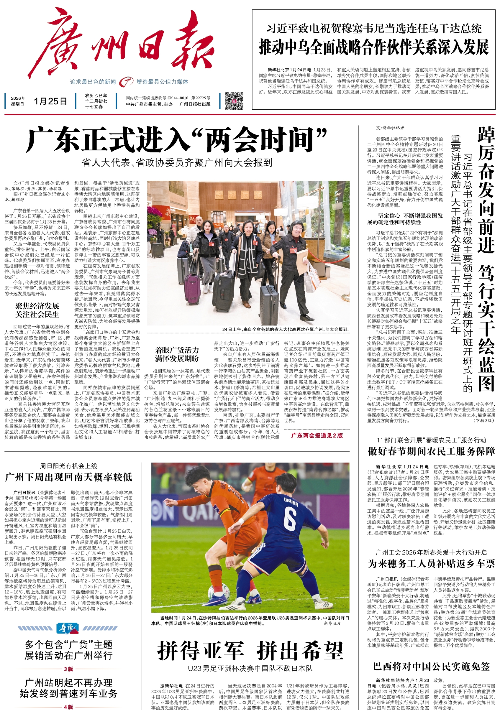 - 广东正式进入“两会时间” 文/广州日报全媒体记者贾政、张姝泓、黄庆、苏赞、杨朝露 图/广州日报全媒体记者庄小龙、杨耀烨 广东省第十四届人大五次会议将于1月26日开幕,广东省政协十三届四次会议将于1月25日开幕。