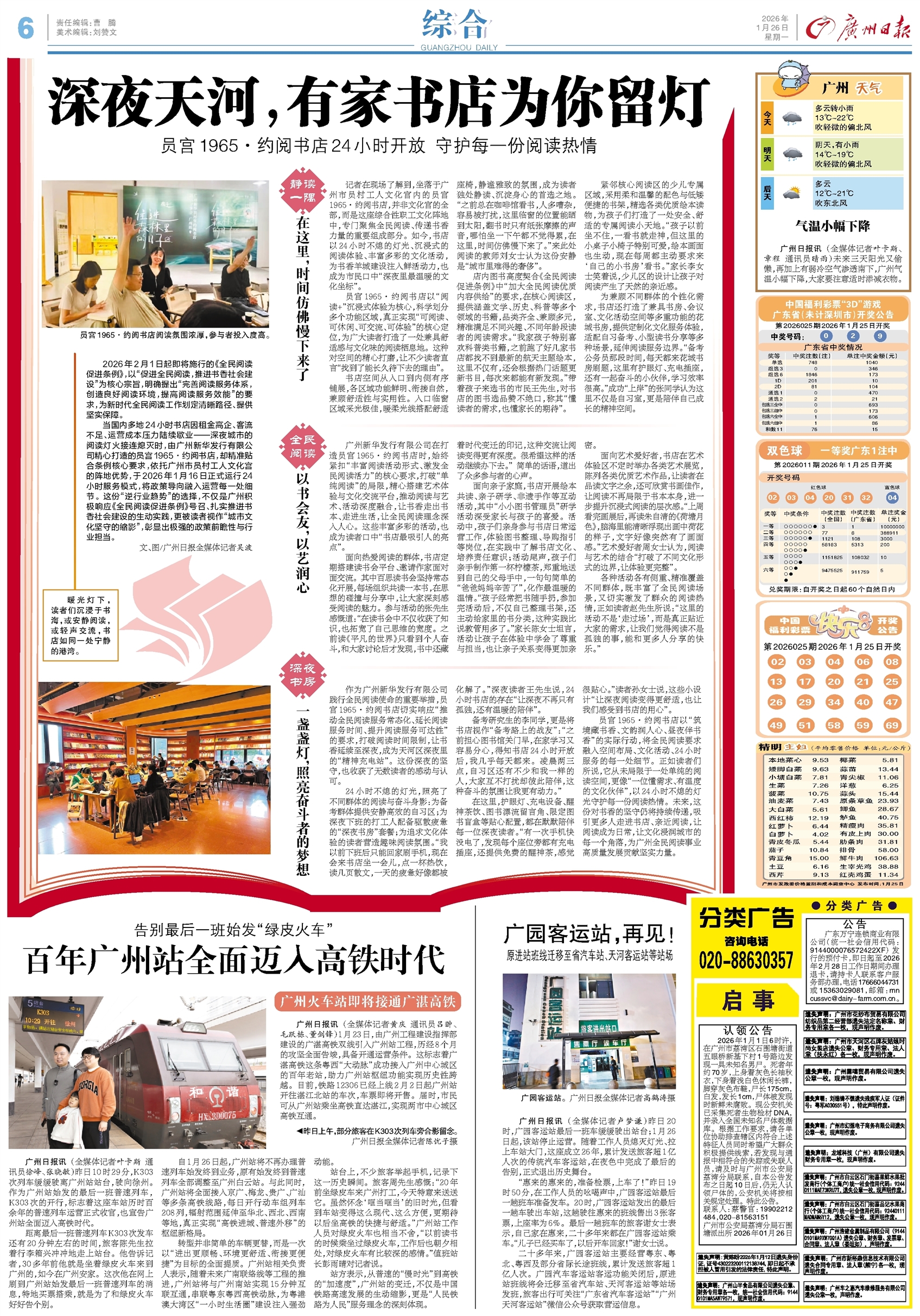- 深夜天河,有家书店为你留灯 2026年2月1日起即将施行的《全民阅读促进条例》,以“促进全民阅读,推进书香社会建设”为核心宗旨,明确提出“完善阅读服务体系,创造良好阅读环境,提高阅读服务效能”的要求,为新时代全民阅读工作划