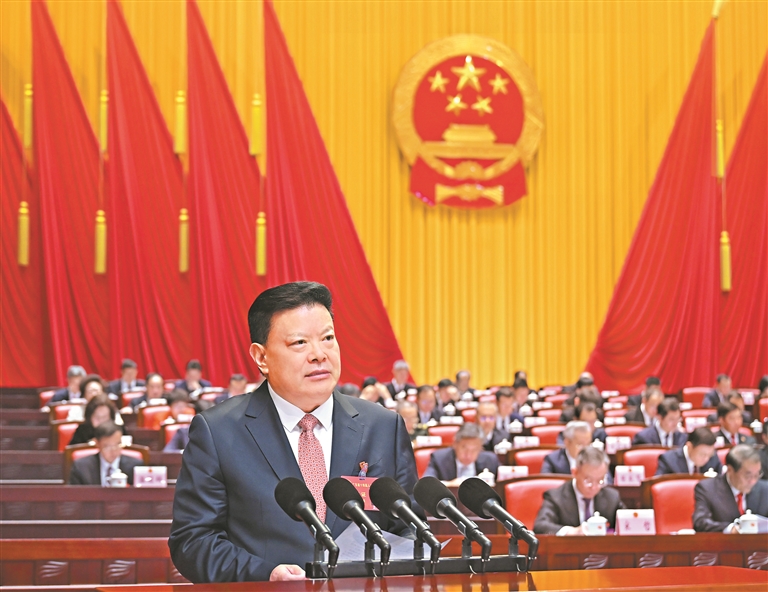 孟凡利在报告中回顾了2025年和“十四五”时期的工作。他说,2025年是中国式现代化进程中具有重要意义的一年,也是广东改革发展历程中很不平凡的一年。11月6日至10日,习近平总书记亲临广东视察并出席第十五届全国运动会开幕式,作出一系列重要讲话重要指示,全省广大干部群众备受鼓舞、倍感振奋。一年来,我们坚持以习近平新时代中国特色社会主义思想为指导,坚决贯彻习近平总书记、党中央决策部署,认真落实国务院工作安排,在省委正确领导下,在省人大及其常委会、省政协监督支持下,全面落实省委“1310”具体部署,真抓实干、埋头苦干,奋力推动广东高质量发展不断取得丰硕成果。