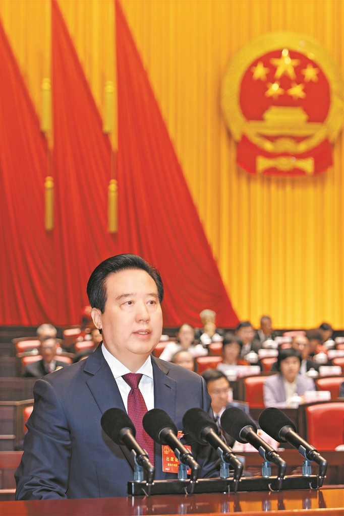 黄楚平说,过去一年,省人大常委会坚持巩固拓展提效能,聚焦机关效能提升三年行动“巩固拓展年”主题,全面推进“四个机关”建设。强化党的建设,扎实开展深入贯彻中央八项规定精神学习教育,持续改进文风会风,巩固精文减会、厉行节约成果。强化机制创新,出台《人大牵头起草重要法规草案办法》等一揽子制度规范,指导10个设区的市开展协同立法,率先实现省市县三级人大常委会听取审议备案审查工作报告全覆盖。率先探索“多法同切口”执法检查新路子,打好联动监督“协同战”。连续第3年举办“机关效能提升”创新项目展示并召开效能提升三年行动总结会,16项工作在全国人大作经验交流。强化基础支撑,数字人大二期上线运行,民主民意平台登记代表履职活动10万余场,“粤人大”访问量386万人次,通过“粤当家”小程序推动解决群众反映问题3.1万多件。