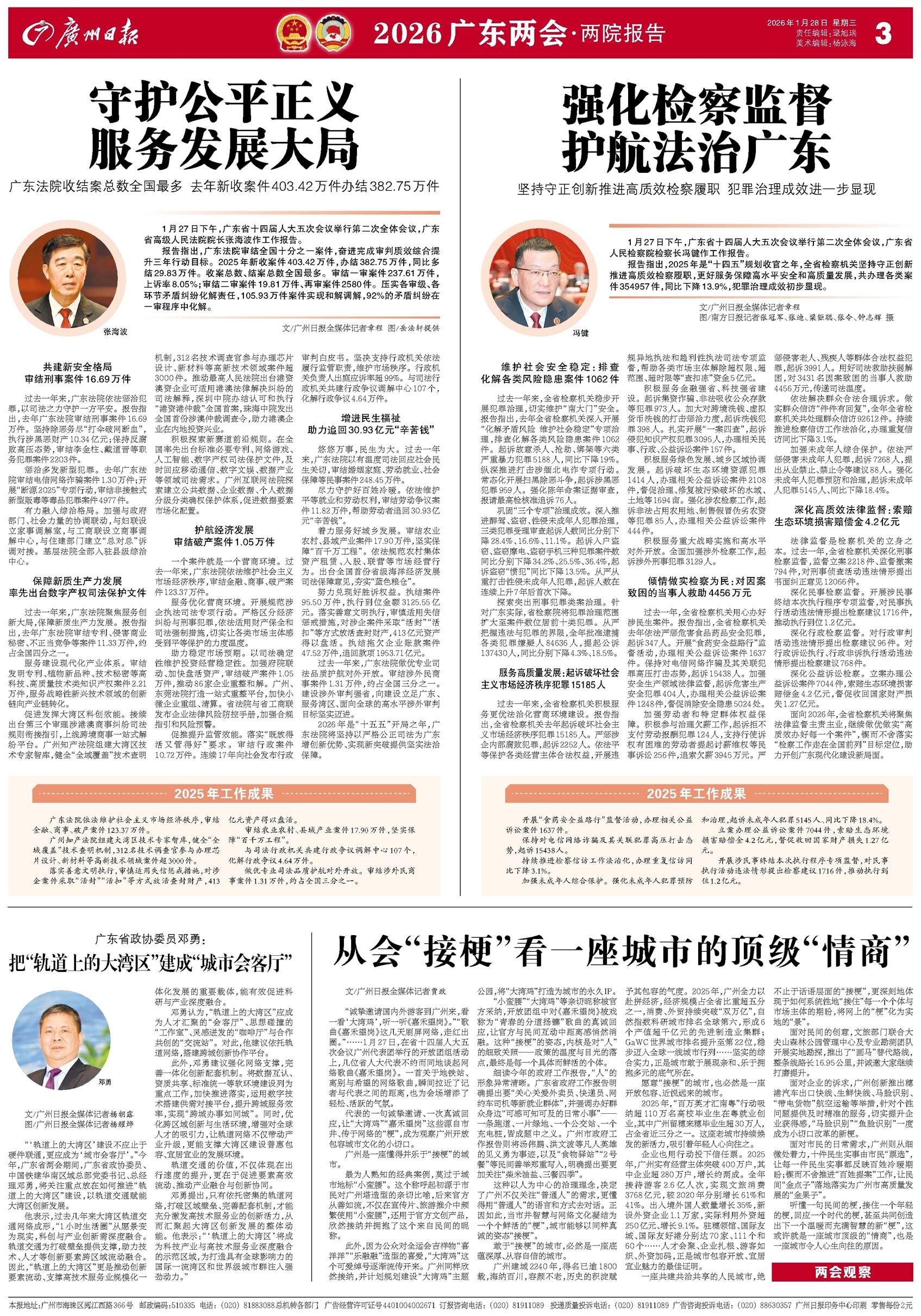 细读今年的政府工作报告,“人”的形象异常清晰。广东省政府工作报告明确提出要“关心关爱外卖员、快递员、网约车司机等新就业群体”,并强调办好群众身边“可感可知可及的日常小事”——一条跑道、一片绿地、一个公交站、一个充电桩,皆成题中之义。广州市政府工作报告则将汤伟鹏、洪文波等凡人英雄的见义勇为事迹,以及“食物驿站”“2号餐”等民间善举郑重写入,明确提出要更加关注“柴米油盐、三餐四季”。