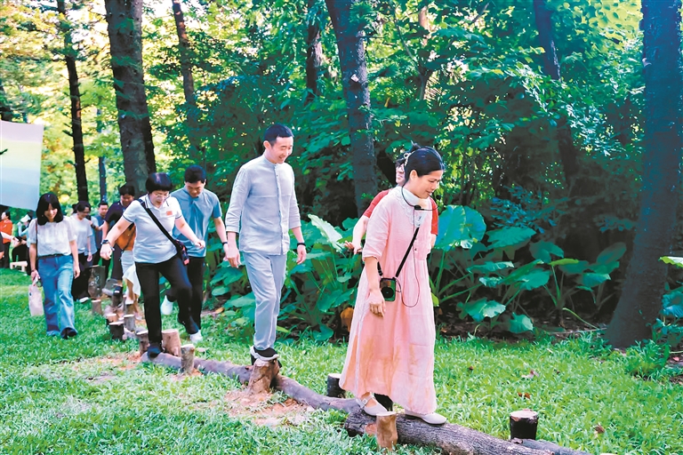 在更广泛的都市健康议题上,这样的“绿色处方”模式也在持续拓展边界,为更多人群带来自然疗愈的可能。越秀公园与广州市第一人民医院失眠联合门诊携手,在公园的睡眠自然疗愈小径开展了一场沉浸式睡眠疗愈之旅。参与者们跟随专业团队的指引,踏入这片藏于城央的秘境,在白兰隐隐的香气与清越的鸟鸣间,开启了一场关于睡眠的温柔探索。此次行走不是一次单纯的体验,而是首次将睡眠的认知行为治疗中的放松训练,与森林自然疗愈相结合,标志着“绿色处方”正式融入广州市第一人民医院非药物治疗失眠的诊疗体系。