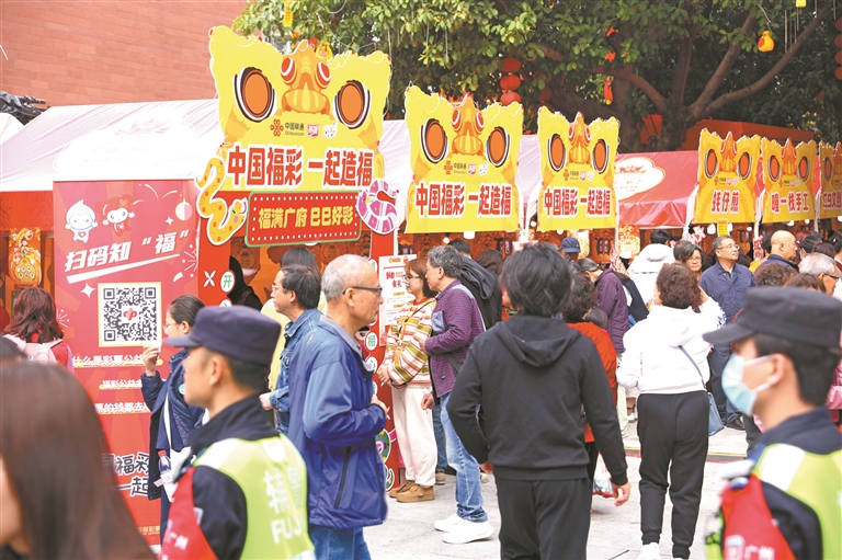 2025年2月,广州福彩携手“潮墟”非遗品牌再次入驻广府庙会,通过在现场设置公益展位,福彩元素打卡等方式,与市民、游客互动,宣传福彩公益属性,诠释福彩的社会责任。