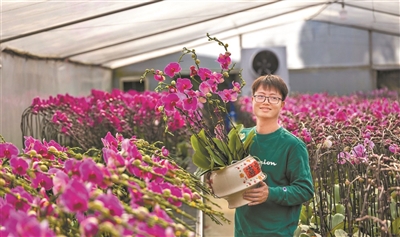 坐落于江高镇峡石村的蝴蝶兰产业园,吸引蝴蝶兰种植企业聚集发展,成为集科研、生产、文旅于一体的现代农业示范园区。“自2023年项目落户以来,蝴蝶兰产业园已吸引30多家企业入驻,形成了从科研、生产到销售、物流的完整产业链,规模化种植确保了年花旺季的充足供应,为火爆的销售提供了坚实后盾。”广州万顷洋农业发展有限公司负责人介绍,仅该产业园2026年蝴蝶兰产量就有望达到800万株。
