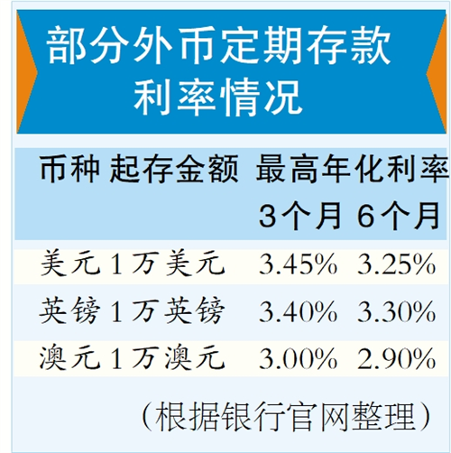 外币存款的利差优势也受到关注。相比人民币存款,美元存款利率虽然也在下行,但目前,部分城商行及大型银行的一年期美元定存利率仍在2.5%至3.6%区间。部分非美元外币存款的年化利率也可以达到“3字头”。