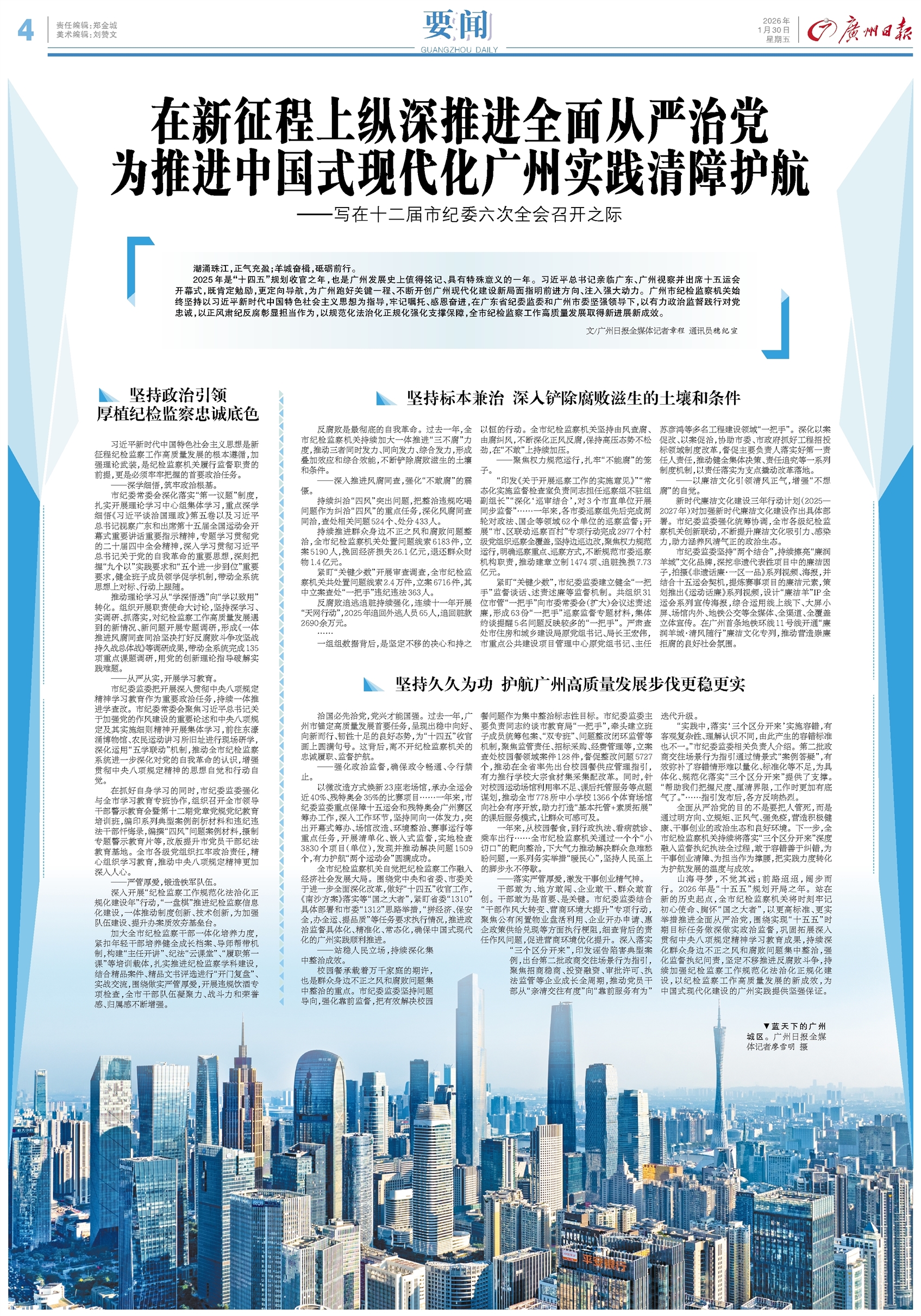 在新征程上纵深推进全面从严治党为推进中国式现代化广州实践清障护航