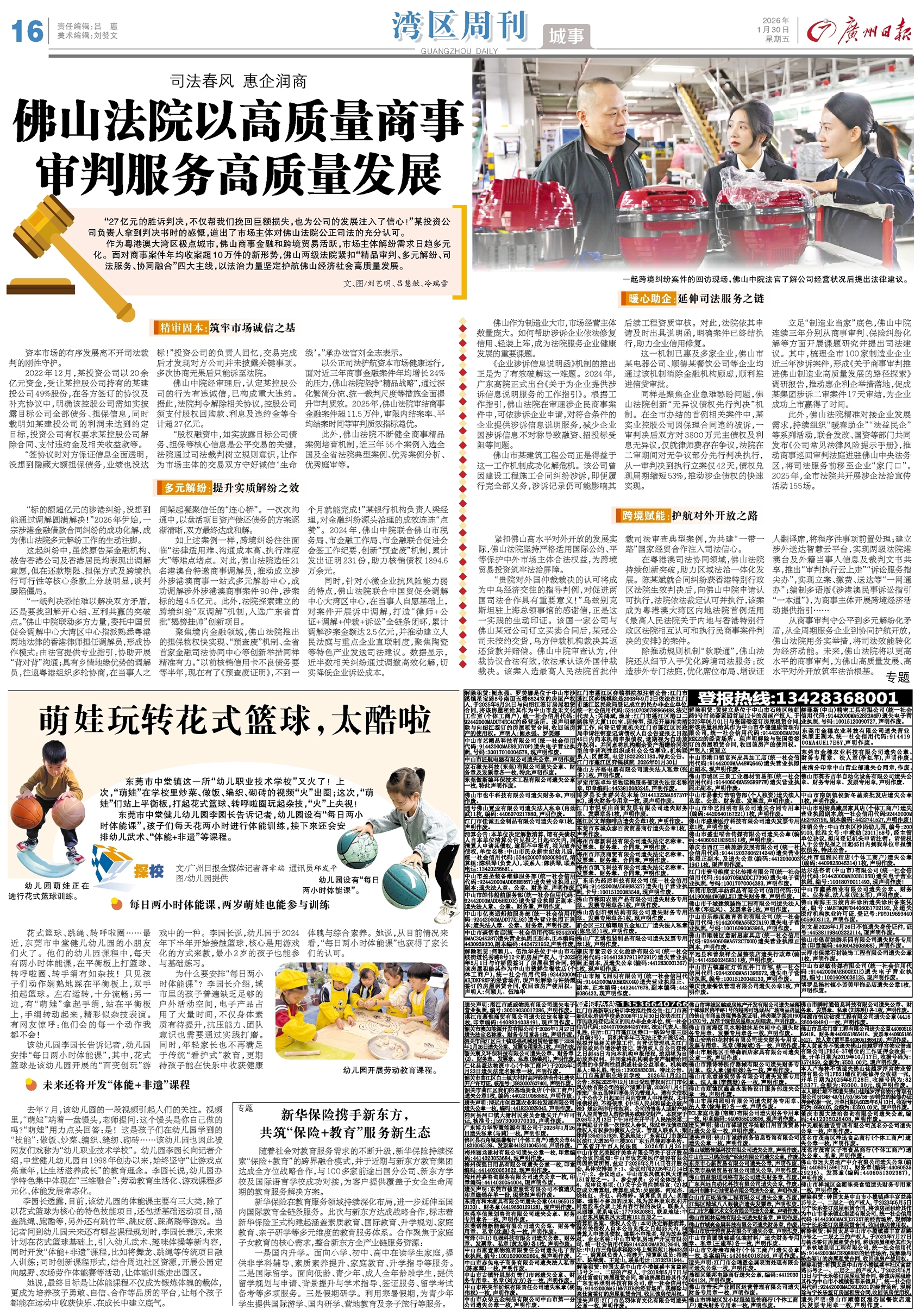 - 佛山法院以高质量商事审判服务高质量发展 “27亿元的胜诉判决,不仅帮我们挽回巨额损失,也为公司的发展注入了信心!”某投资公司负责人拿到判决书时的感慨,道出了市场主体对佛山法院公正司法的充分认可。 作为粤港澳大湾区极点城市,佛山商