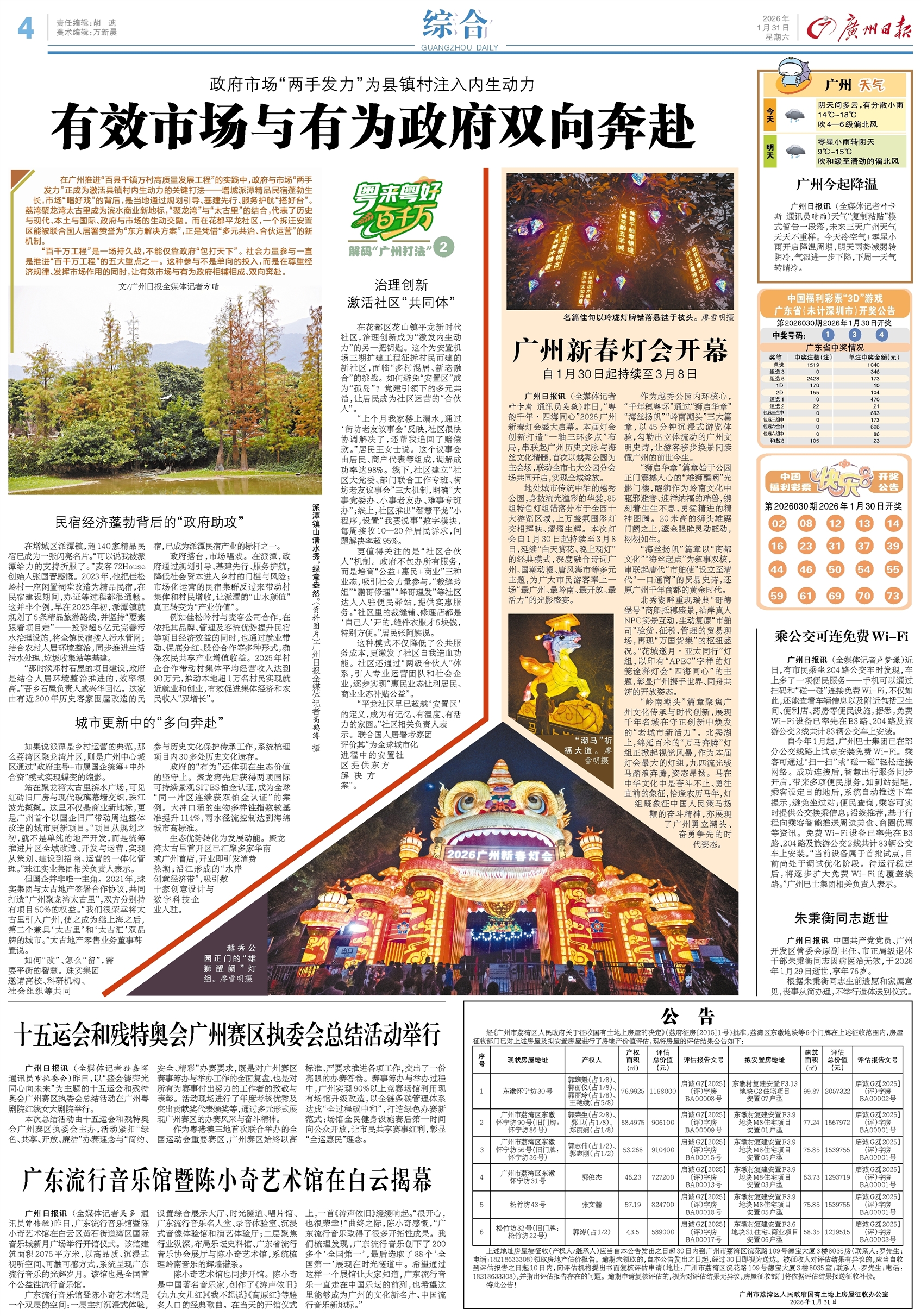 - 广州新春灯会开幕 广州日报讯 (全媒体记者叶卡斯 通讯员吴薇)昨日,“粤韵千年・四海同心”2026广州新春灯会盛大启幕。本届灯会创新打造“一轴三环多点”布局,串联起广州历史文脉与海丝文化精髓,首次以越秀公园为主会场