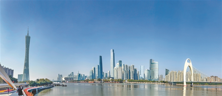 蓝天下的珠江两岸。广州日报全媒体记者廖雪明 摄