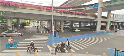 针对工业大道部分路段非机动车道宽度不足的问题,本次改造创新设置“共享车道”,将最右侧机动车道与既有非机动车道合并,利用1.1米高的隔离护栏与左侧车道分隔,形成宽度不低于3.25米、限速40km/h的连续通行空间。改造后,非机动车通行量提升50%以上,机动车通行未受明显影响,较好地平衡了两类车辆的通行需求。