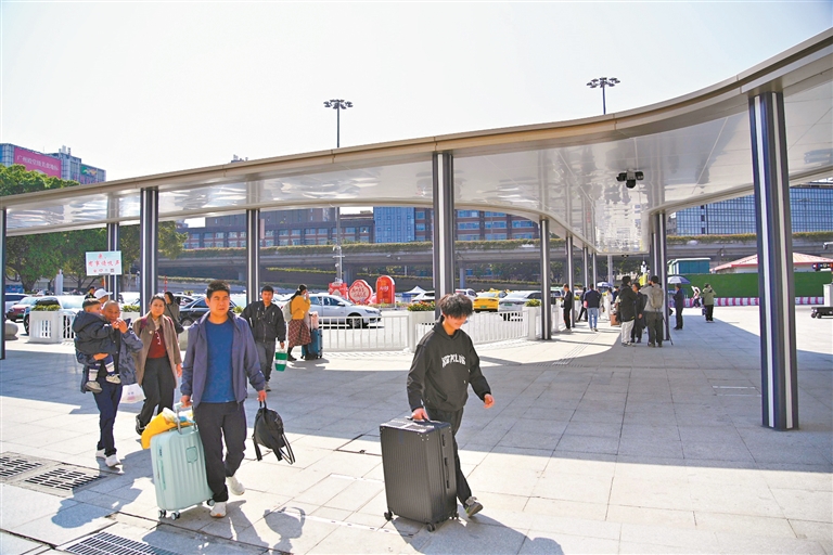 昨日,记者看到很多旅客在广州火车站广场上打卡,跟女儿、孙儿三代人一起出行的黄先生感叹道,“现在广场和周边环境都很靓,无论地铁、打车往返广州站都很方便,跟从前相比变化太大了。”