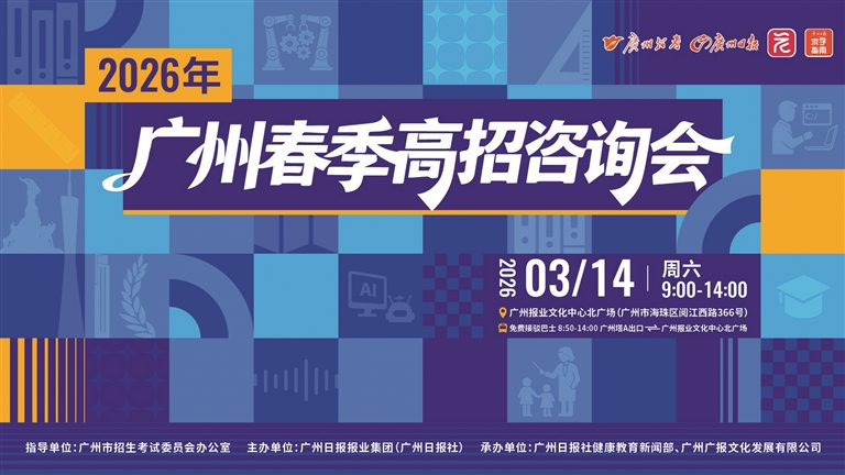 为帮助考生和家长更好地了解春季高考招生政策、选择适合的院校与专业,由广州市招考办指导,广州日报报业集团(广州日报社)将于3月14日主办“广州高等学校春季招生现场咨询会”。这也是广州日报连续多年举办的公益服务活动,旨在搭建考生与高校之间的沟通桥梁。届时,参与春季招生的高校将设立展位,面对面为考生答疑解惑。