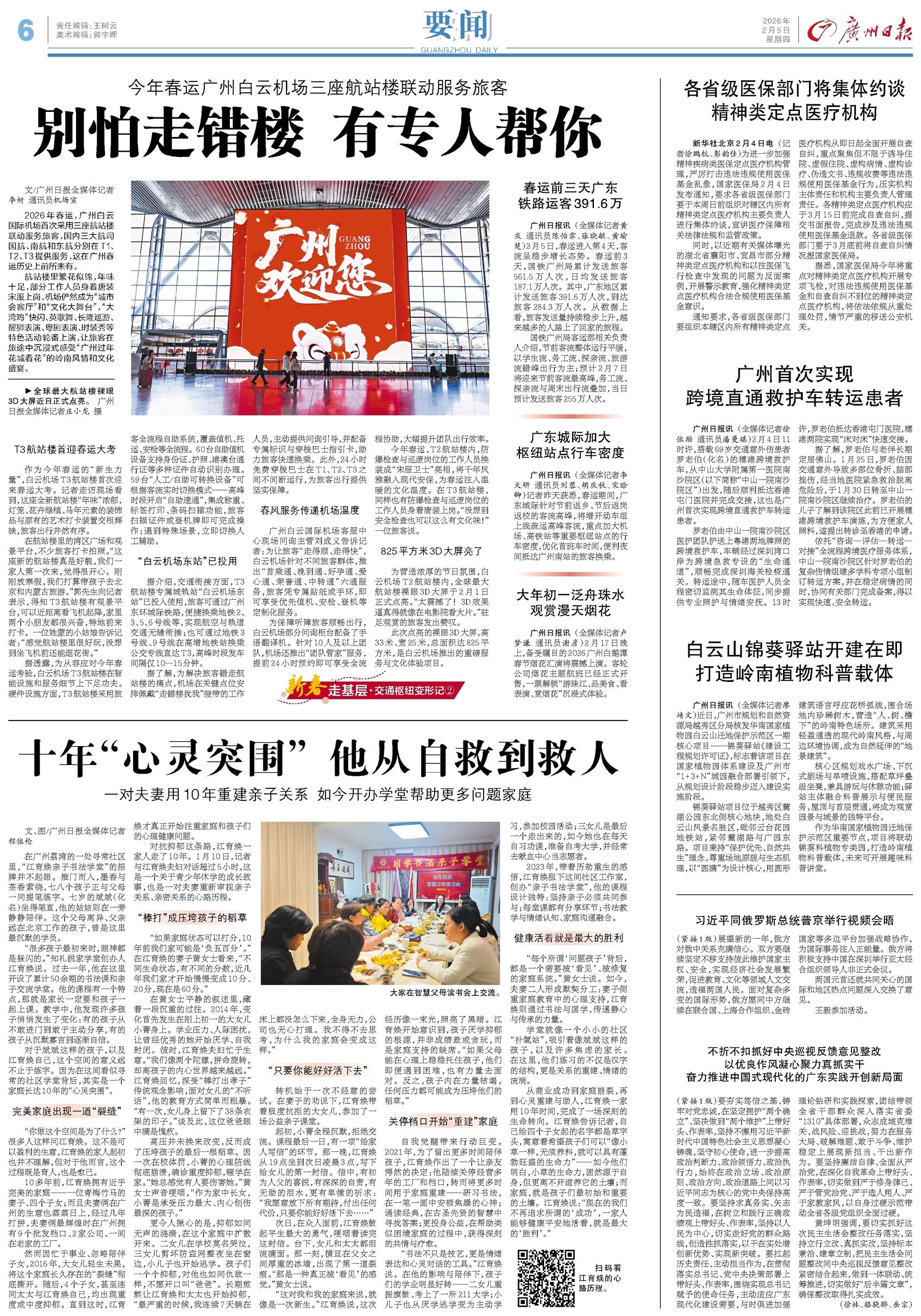 - 别怕走错楼 有专人帮你 走基层·交通枢纽变形记② 文/广州日报全媒体记者李妍 通讯员机场宣 2026年春运,广州白云国际机场首次采用三座航站楼联动服务旅客,国内三大航司国航、南航和东航分别在T1、T2、T3提供服