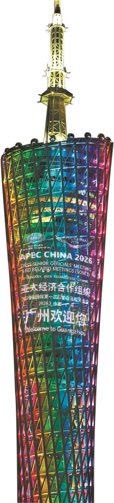 广州日报讯 (全媒体记者雷与虹)昨夜,广州地标性建筑广州塔熠熠生辉,塔身滚动播放着2026APEC标志以及热情洋溢的中英文标语,以热情而庄重的方式,祝贺2026年亚太经合组织(APEC)第一次高官会及相关会议召开,欢迎来自APEC21个经济体的嘉宾们,共同祝福APEC“中国年”精彩启幕。