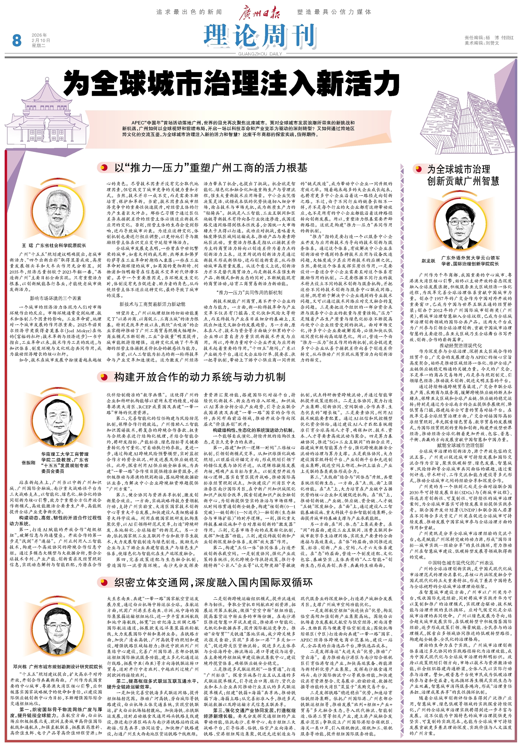 APEC“中国年”首场活动落地广州,世界的目光再次聚焦这座城市。面对全球城市发展浪潮所带来的新挑战和新机遇,广州如何以全球视野和前瞻布局,开启一场以科技革命和产业变革为驱动的深刻转型?又如何通过跨地区跨文化的交流互鉴,为全球城市治理注入新的活力和智慧?这座千年商都的探索实践,值得期待。