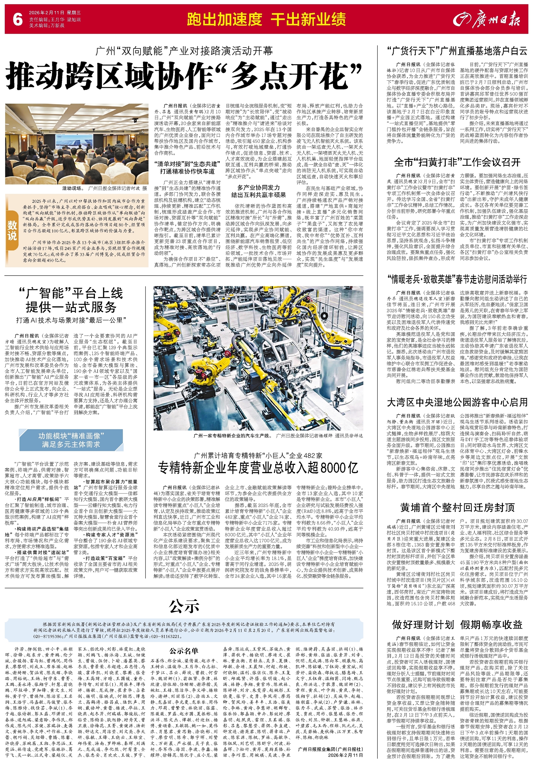 广州日报讯 (全媒体记者方晴 通讯员穗发宣)为破解人工智能行业技术供给与应用场景对接不畅、资源分散等痛点,加快推动AI技术产业化落地,广州市发展和改革委员会作为全市人工智能发展牵头单位,创新推出“广智能”AI产业服务平台,日前已在官方网站及微信公众号上正式发布,向企业、科研机构、行业人才等多方社会主体开放服务。
