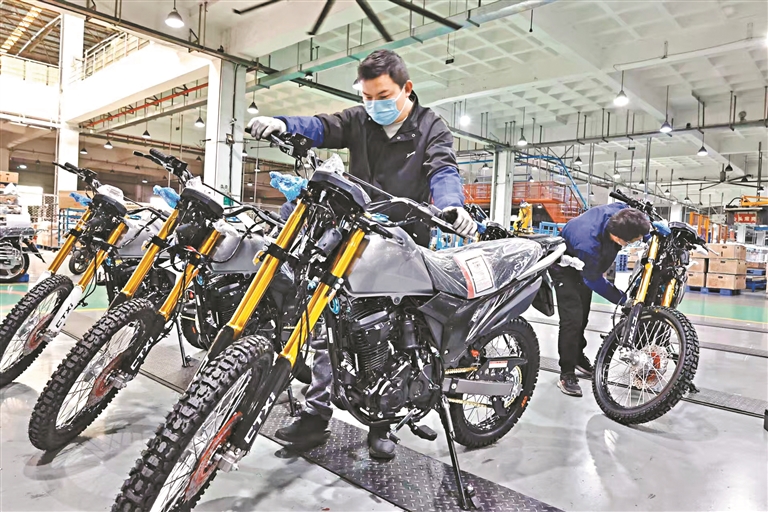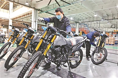 生产线的忙碌,直接映射出市场的热度。“这批是2月份以及部分3月份发往海外的摩托车,很多海外客户考虑到中国春节假期放假,一开年就加紧下订单,我们工厂也积极抢订单、促生产。从现在的数据来看,单是3月份已下的订单同比就增长了15%,而今年一季度的订单也有两位数的增长。”广州豪进摩托车股份有限公司国际销售部经理王贻玲指着正装上集装箱的摩托车说,“新春前夕开始的这批摩托车出口货值超1000万美元,90多个货柜将送往南沙、盐田港等码头,并装船运往非洲、东南亚等地区。”