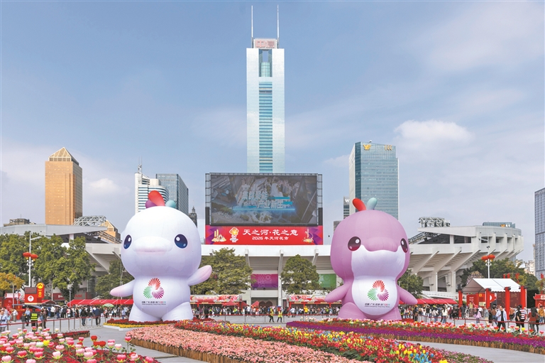 农历乙巳年腊月二十八,广州市天河体育中心一派热闹非凡,环场一周是迎春花市的喜庆场面——看花买花、品美食、购年货;体育场馆内热火朝天,市民游客在这里畅享身心愉悦的温暖阳光、健康生活。