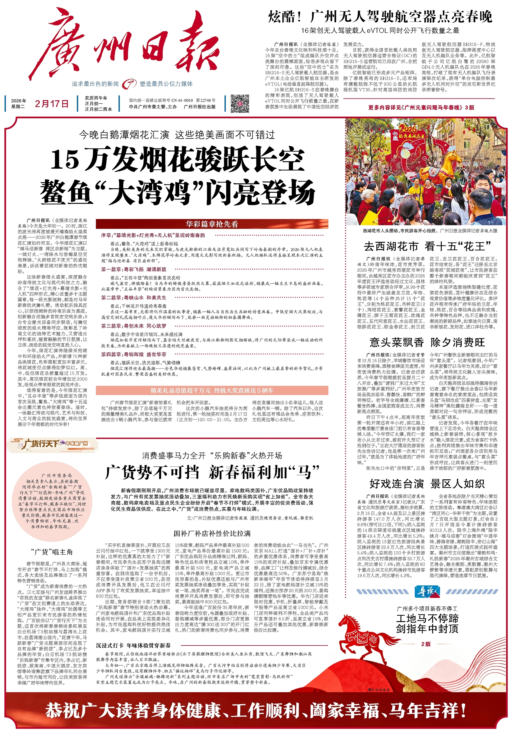 - 意头菜飘香 除夕消费旺 广州日报讯 (全媒体记者曾繁莹)2月16日除夕,羊城餐饮市场迎来消费高峰,酒楼食肆座无虚席,年夜饭消费热力拉满。记者走访获悉,今年春节假期提前至腊月二十八开启,叠加“请到广东过大年”文旅推广等多重