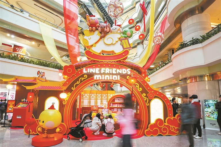 一场“粤见岭南”的萌趣之旅从广州天河城北门正式开启:以minini萌趣形象融合岭南新春元素,构成整个游园体验别开生面的“新春迎宾序曲”;在购物中心中庭,主题IP与岭南传统花灯、舞狮、窗花等元素交融,开启了一场传统与潮流碰撞的新春欢乐游园会。重磅打造的“新春限定联名快闪店”成了近期的消费热点,这里不仅汇集IP产品,还有不少新春限定周边独家限时发售,创意春联、窗贴、利是封、福字以及特别为亲友欢聚设计的定制版掼蛋礼盒,让传统新年周边变得潮趣十足。
