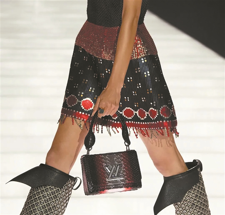 时尚博主张婷表示,LV本季45套造型尽显当代女性的多元力量,而最动人的设计,莫过于对“光线”的极致表达:钉珠刺绣折射灵动目光,金属材质化作流动光幕,利落皮革刚柔并济,态度与温度兼具。她认为,宫廷斗篷、盔甲廓形、几何拼接与飒爽长靴,均十分适配新春假期;若结合东方审美点缀红、紫等配饰,更能呼应节日氛围,氛围感与实穿性双双拉满。