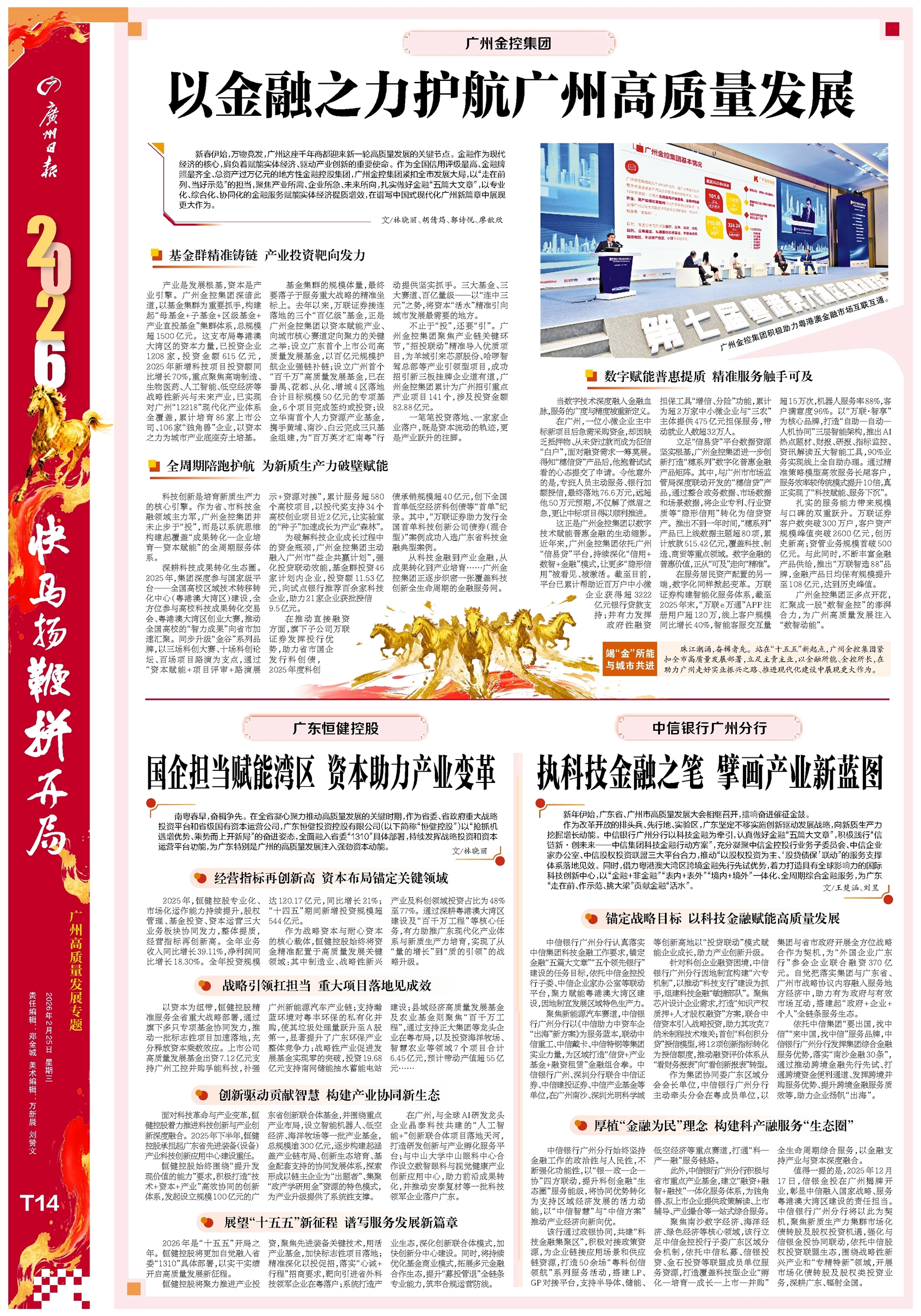 作为改革开放的排头兵、先行地、实验区,广东坚定不移实施创新驱动发展战略,向新质生产力挖掘增长动能。中信银行广州分行以科技金融为牵引,认真做好金融“五篇大文章”,积极践行“信链新・创未来——中信集团科技金融行动方案”,充分凝聚中信金控投行业务子委员会、中信企业家办公室、中信股权投资联盟三大平台合力,推动“以股权投资为主、‘股贷债保’联动”的服务支撑体系落地见效。同时,借力粤港澳大湾区跨境金融先行先试优势,着力打造具有全球影响力的国际科技创新中心,以“金融+非金融”“表内+表外”“境内+境外”一体化、全周期综合金融服务,为广东“走在前、作示范、挑大梁”贡献金融“活水”。
