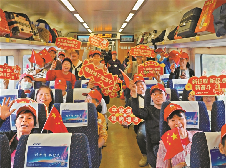 据估计,至元宵节将有近九成的务工人员返粤返岗,为广东高质量发展注入源源不断的人力动能。返岗专列上,既有返岗的老员工,也有第一次来粤务工的新面孔。每个人的心底,都揣着一份对美好生活的向往。