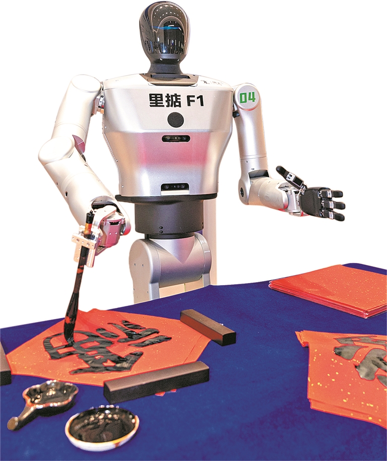 里工实业带来了人形机器人里掂D1、里掂F1。现场,里掂F1手持毛笔挥毫,写下一个个“福”字,不仅字迹工整,运笔还颇有书法家风范,吸引了不少人驻足。该公司相关负责人曹煜然告诉记者:“我们的机器人写字是跟一个书法老师学的,不仅是‘福’字,它还可以写很多个字,只要我们的老师和技术同事稍微调教即可。”