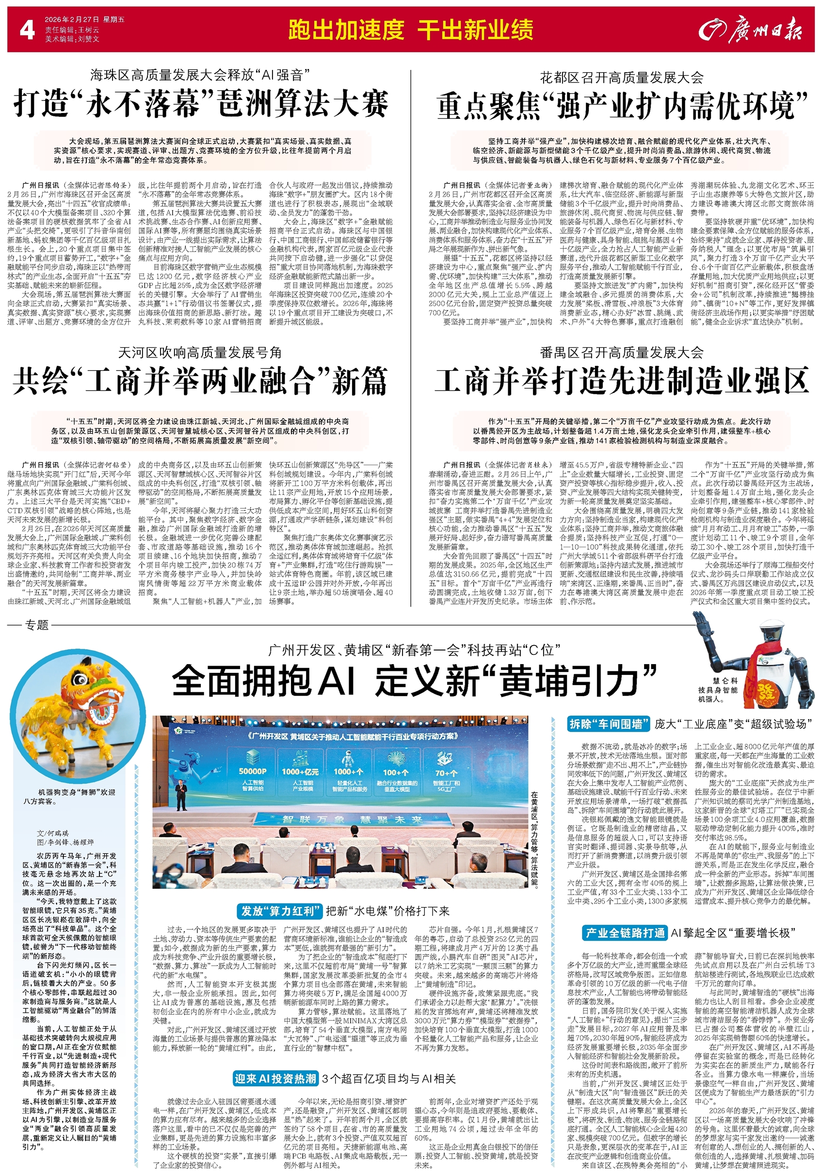 - 全面拥抱AI 定义新“黄埔引力” 文/何瑞琪 图/李剑锋、杨耀烨 农历丙午马年,广州开发区、黄埔区的“新春第一会”,科技毫无悬念地再次站上“C”位。这一次出圈的,是一个充满未来感的开场。 “今天,我特意戴上了这款智能眼