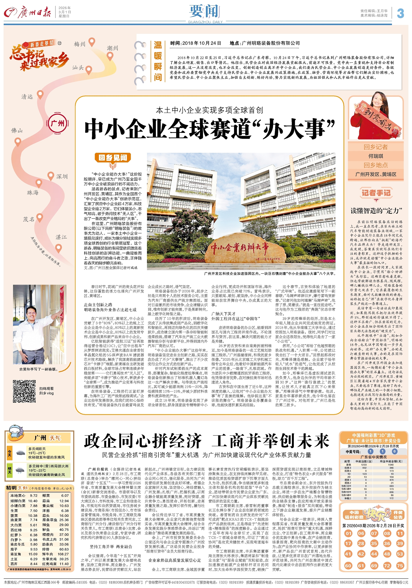 - 政企同心拼经济 工商并举创未来 广州日报讯 (全媒体记者陈薇薇 通讯员穗联宣) 2月28日,市工商联(总商会)举办“穗同心·同心拼经济 奋进‘十五五’”——学习贯彻2026年省、市高质量发展大会精神暨主席(会长)新春交流活动。市