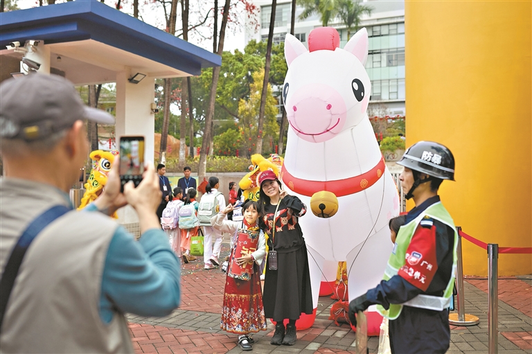 文德路小学的老师们还为同学们送上马年祝福书签和学生原创文创“利是封”,以及各年级专属的“厚德学堂·行走的思政课”明信片。该校元宵节举行“文德萌马闹元宵”校园庙会,打造“城市印记”主题义卖花市与科创作品展示区,让学生在文化传承、科技创新中,感受校园温情。“这一系列安排,既是仪式更是教育,让文德少年在浸润中成长,在关爱中启航。”陈康英说。