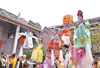 特邀而来的潮阳英歌舞、吴川飘色、中国木偶、川剧变脸和从化水族舞等国家级、省级非遗代表性项目惊艳亮相,不同地域的文化风情在杨箕街头交相辉映,为元宵民俗活动增添了别样韵味。活动期间,市民游客沉浸式体验广府年味,感受非遗魅力。