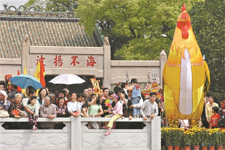 南海神庙独特的地位带动了附近扶胥镇的繁荣。这里商旅云集,市面活跃,民间庙会活动更是风生水起。每年农历二月的南海神诞(波罗诞)热闹非凡,让广州有了“第一游波罗,第二娶老婆”的俗语。庙西南百步小峰“章丘”之上,有一座浴日亭,当时登亭可眺望大洋,烟波浩渺,万里无际,更有海上日出之壮阔景象。“扶胥浴日”被列为宋元时期“羊城八景”之一。在2025年“羊城八景”评选中,它也成为“黄埔云帆”重要的组成部分。