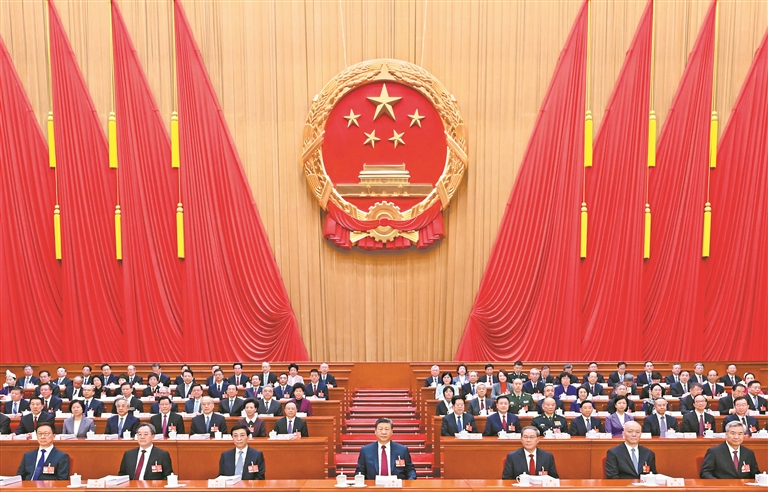 上午9时,赵乐际宣布:中华人民共和国第十四届全国人民代表大会第四次会议开幕。会场全体起立,高唱国歌。