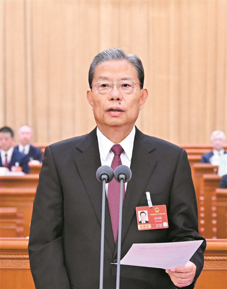 大会主席团常务主席、执行主席赵乐际主持大会。大会主席团常务主席、执行主席李鸿忠、王东明、肖捷、郑建邦、丁仲礼、蔡达峰、何维、武维华、铁凝、彭清华、张庆伟、洛桑江村、雪克来提·扎克尔、刘奇在主席台执行主席席就座。