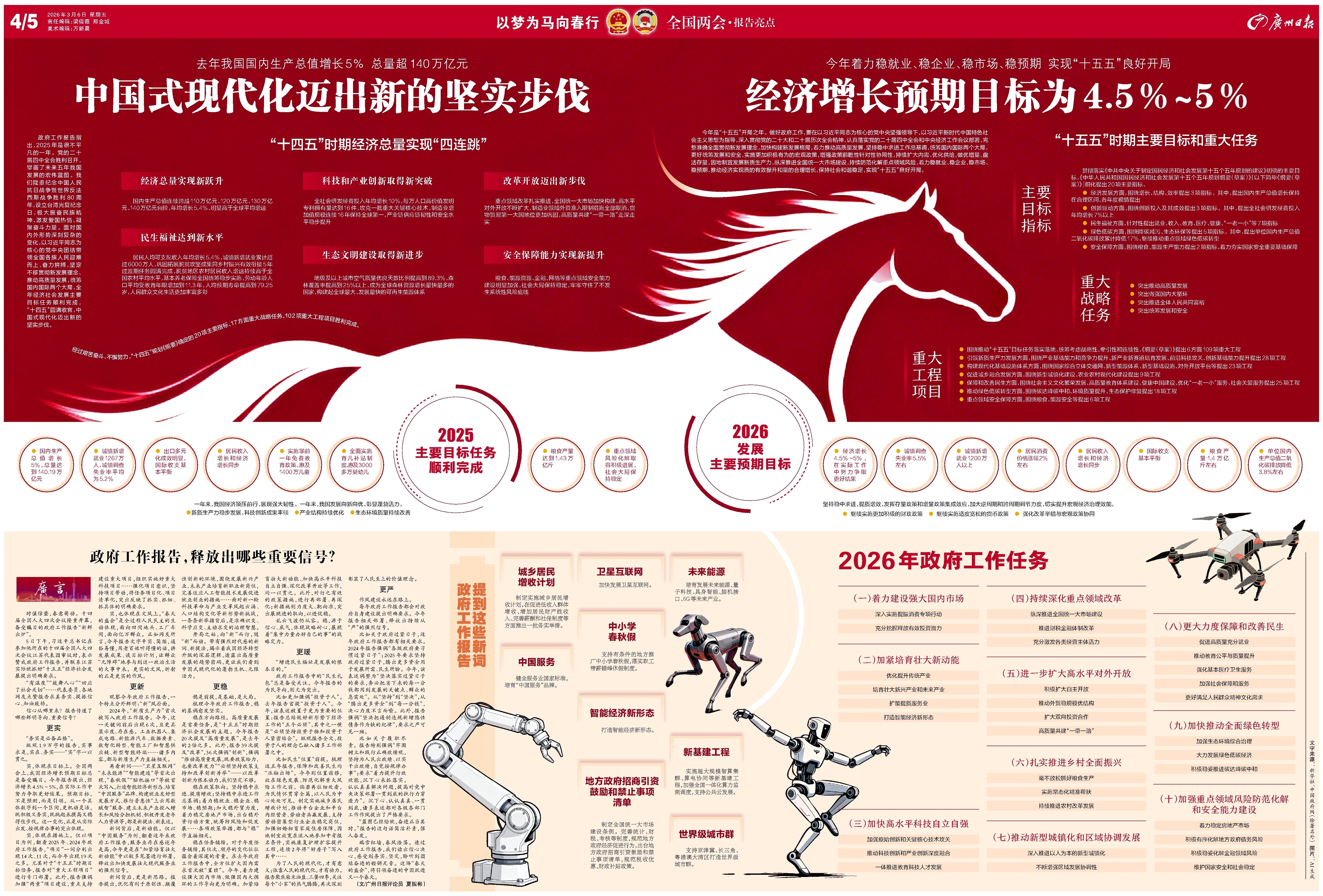 瑞雪红墙,春风浩荡。透过政府工作报告,我们读出信心决心,感受到务实、坚定,聆听到团结奋进的铿锵足音。这场“春天的盛会”,将引领奋进的中国跃进又一个春天。