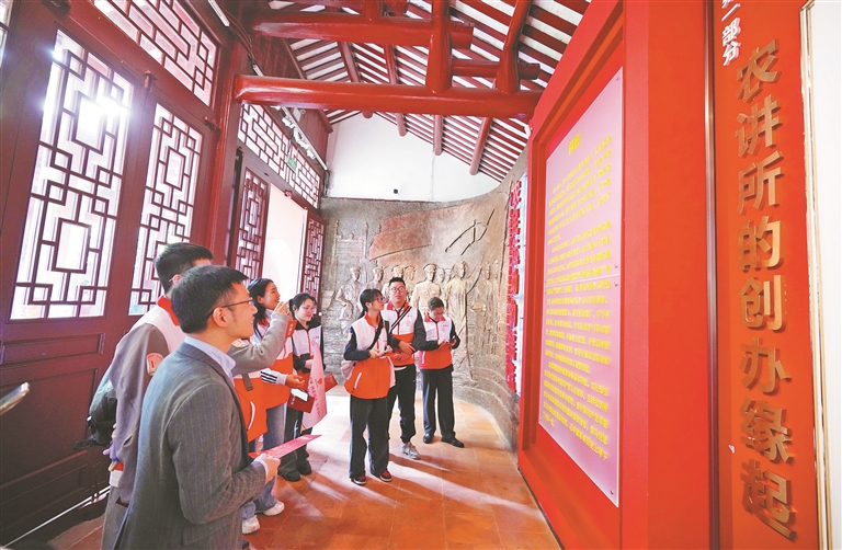 中山四路42号,这里是农讲所纪念馆,一座承载着革命星火的古老殿堂。百年前,毛泽东同志在此主办第六届农民运动讲习所,该届农讲所规模最大、招生最广、学时最长、影响最深远,成为播撒革命星火的重要阵地,为党培养大批农民运动干部、推动革命发展作出重要贡献。“红色广州之路”以农讲所纪念馆为起点,带领大家重回那段光辉的红色历程。在这里,学员们深入学习史料,完成现场打卡与影像记录任务,在实践体验中感悟初心力量。
