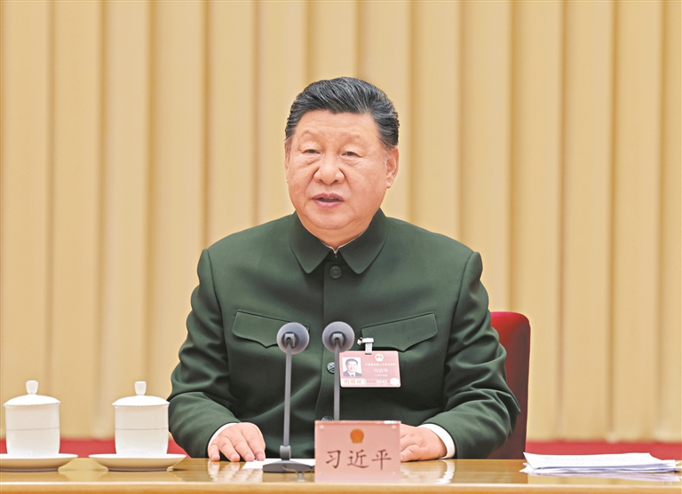 新华社北京3月7日电 (记者梅常伟)中共中央总书记、国家主席、中央军委主席习近平7日下午在出席十四届全国人大四次会议解放军和武警部队代表团全体会议时强调,“十五五”时期要如期实现建军一百年奋斗目标、高质量推进国防和军队现代化,必须坚持好、运用好、发展好政治建军这个重要法宝,毫不动摇坚持和加强党对军队绝对领导,充分发挥政治建军特有优势,凝心聚力推动国防和军队现代化行稳致远。