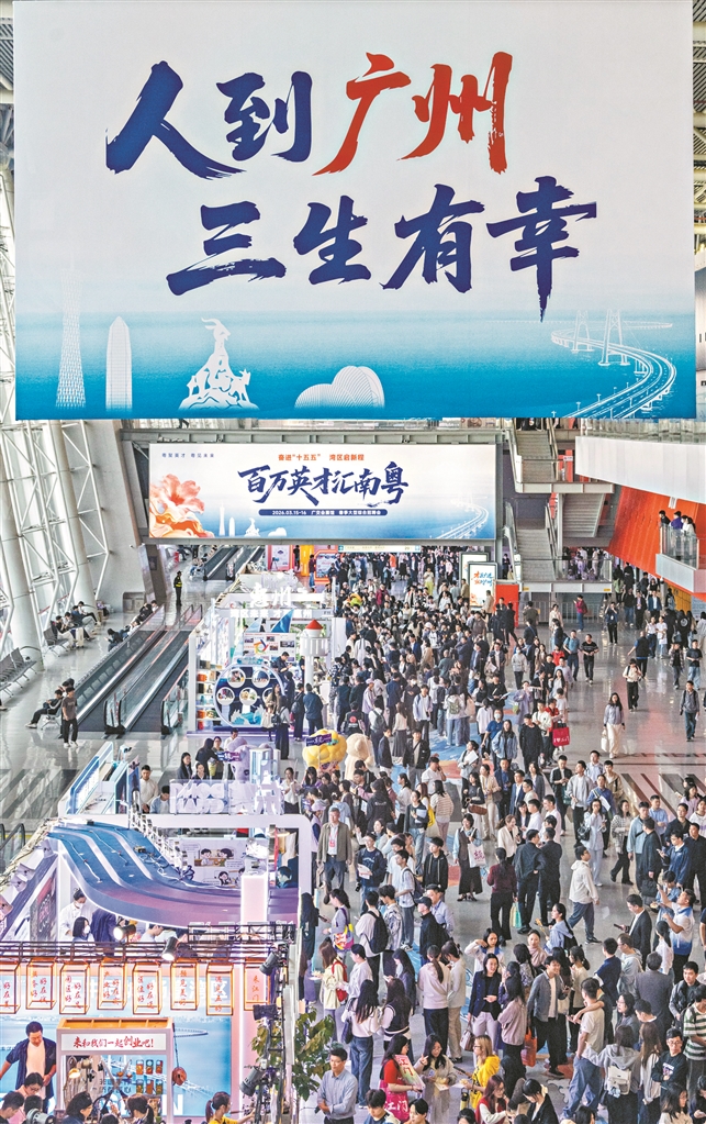 “百万英才汇南粤”2026年春季大型综合招聘会,3月15日至16日在广州成功举办,招聘单位数、提供岗位数、入场学生数均创历史最高。据统计,现场近2000家重点用人单位参加,提供超8.5万个优质岗位;两天共有超17万名求职者入场,来自超2000所高校。招聘会紧扣智能制造产业风口,高薪争抢具身智能、机器人等核心领域人才,特设博士、博士后专区广引高层次英才,线上线下双线招聘模式引爆现场人气,成功打响“百万英才汇南粤”2026年人才引育行动计划开局第一枪,为粤港澳大湾区高质量发展汇聚强劲人才动能。